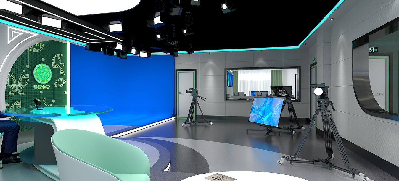 在灯光设计上,灯光分布均匀,并由控制室远程控制,其中虚拟演播室整体照度应达到摄像要求照度值,灯具也都采用了新型绿色节能LED照明灯具,背景、轮廓光强,使画面有纵深感,背景照度均无明显交叉阴影;同时根据演播室的使用功能,确定室内声学设计音质指标,进行隔声、噪声控制等各方面进行科学、完整的声学条件处理,以此来调整混响时间,避免音质缺陷,使演播室获得高性价比的理想音质效果。