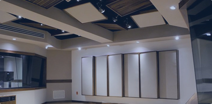 针对不同房间格局进行不同的校园电视台风格设计,所有材料为阻燃、环保材料,隔音、回音处理达到业界高水平