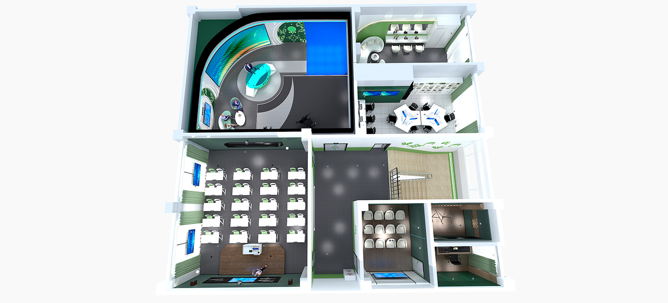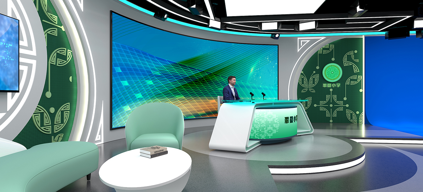 在灯光设计上,灯光分布均匀,并由控制室远程控制,其中虚拟演播室整体照度应达到摄像要求照度值,灯具也都采用了新型绿色节能LED照明灯具,背景、轮廓光强,使画面有纵深感,背景照度均无明显交叉阴影;同时根据演播室的使用功能,确定室内声学设计音质指标,进行隔声、噪声控制等各方面进行科学、完整的声学条件处理,以此来调整混响时间,避免音质缺陷,使演播室获得高性价比的理想音质效果。