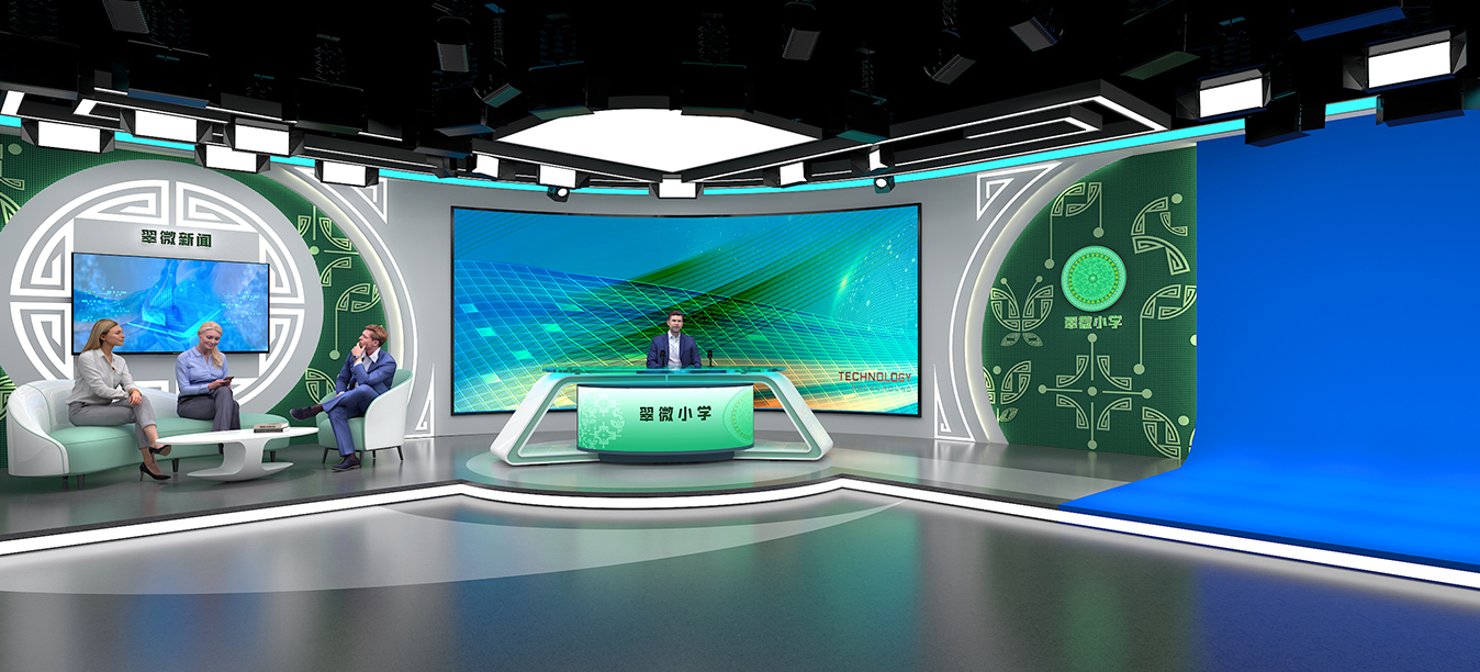 从前期的设计策划,到设备的提供、安装、调试以及整体的装修,百乐博blb科技为北京翠微小学提供了全方位一体化的服务。该演播室分为实景播报区、虚拟演播区和导播区,用到的核心设备主要有虚拟演播室系统、非线性编辑系统、声学灯光系统及演播室舞美等。